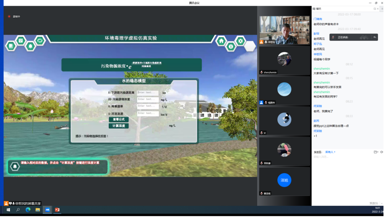 申哲民老师为本科生进行《环境毒理学虚拟仿真实验》课程在线教学