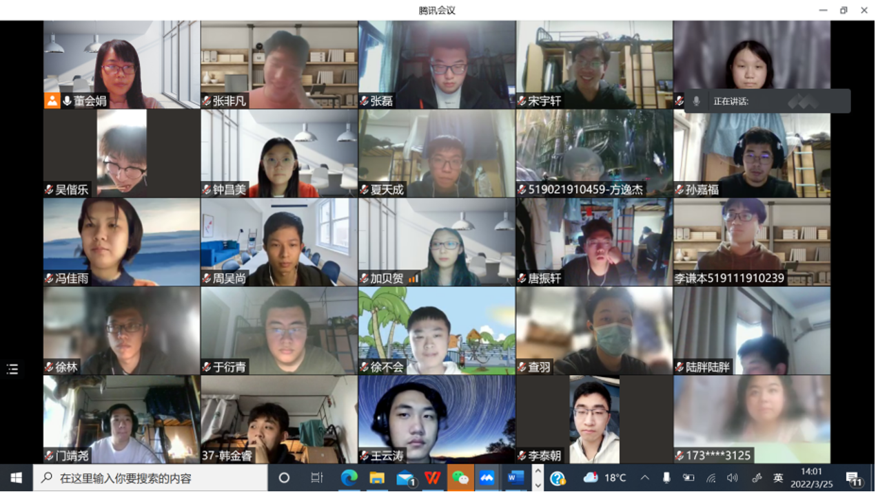 截止3月底,学院按正常教学计划共开展线上理论课教学本科生课程21门、研究生课程10门,共计1069名本科生与研究生按时参加在线学习。老师们使用腾讯会议、Canvas系统开展在线教学并建立课程微信群等,师生交流充分、研讨热烈,共同促进教学相长。为应对核酸检测的影响,采用及时录制、上传课程视频的方式帮助学生随时查缺补漏。虽然大多数学生已有线上上课的经验,但疫情还是可能影响到学生的学习和心理状况,在课堂上老师们会关切学生存在的困难,并认真听取建议,力求实现最佳的教学效果。突如其来的疫情为在线授课带来挑战,但也让我们看到了师生同舟共济的信念和担当。