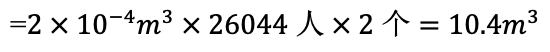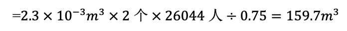 非堆叠饭盒总体积=单个饭盒体积×个人每日使用量×交大用餐人数÷垃圾非紧密堆叠系数