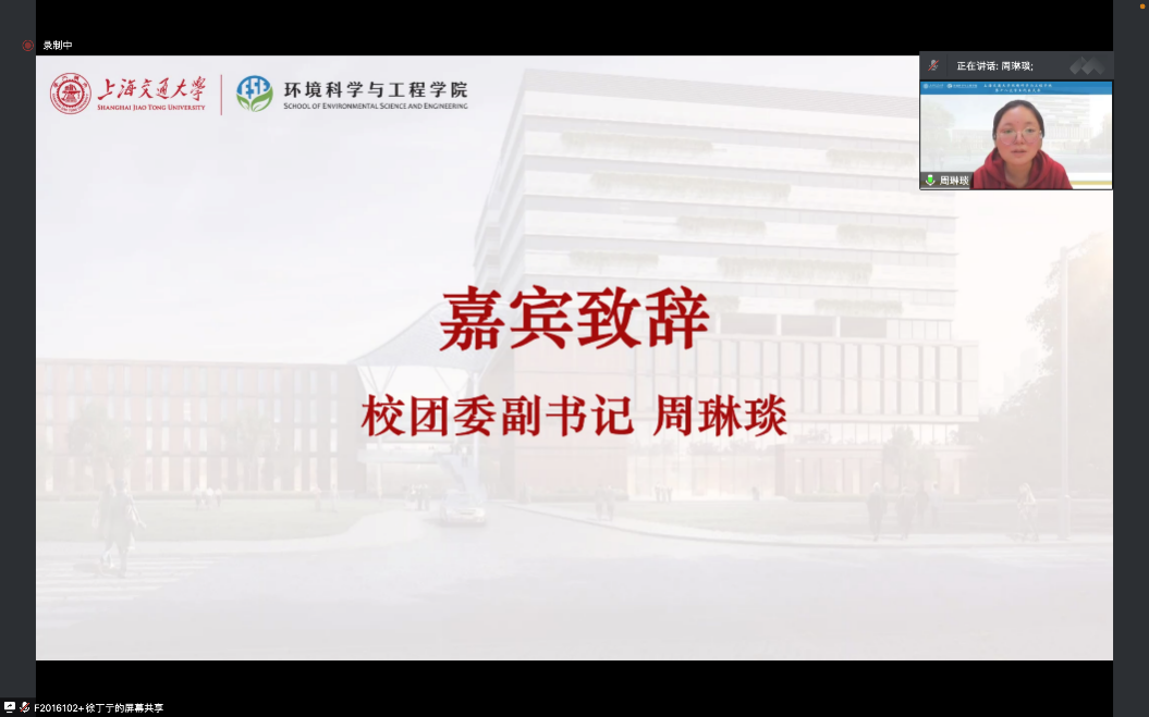 周琳琰代表校团委对大会的召开表示热烈祝贺,她对过去一年环境学院团委学生会和研究会的工作表示肯定,特别对环境学院广大学生在此次抗疫期间的志愿服务工作表示感谢和赞许,她希望新一届团委学生会、研究生会能够更好地服务环境学院学子,走向更加美好的明天。