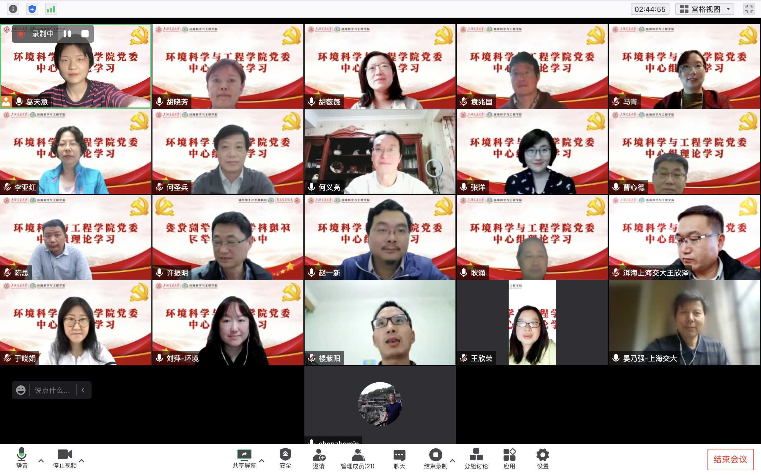 副院长许振明就习近平总书记关于疫情防控的重要讲话精神进行领学。他指出,在坚持“外防输入、内防反弹”总策略和“动态清零”总方针指引下,常态化疫情防控已取得阶段性成效,这充分体现了我国防控疫情的坚实实力和强大能力,彰显了中国共产党领导和我国社会主义制度的显著优势。当前,疫情防控工作正处于“逆水行舟、不进则退”的关键时期和吃劲阶段,远没有到可以松口气、歇歇脚的时候,全体成员必须深刻认识抗疫斗争的复杂性和艰巨性,一以贯之把思想和行动统一到习近平总书记重要指示精神和党中央、国务院决策部署上来,加强组织领导,保持清醒头脑,充分发挥党员干部先锋模范作用,及时掌握、及时指挥、及时行动,以时不我待的精神抓实抓细疫情防控各项工作,让“环境绿”涌动在抗疫第一线,为共同打赢疫情防控这场硬仗贡献力量。他表示,自己也会坚守好学院,继续为科研复工复产做好安全保障工作,以积极的姿态迎接疫情防控的全面胜利。